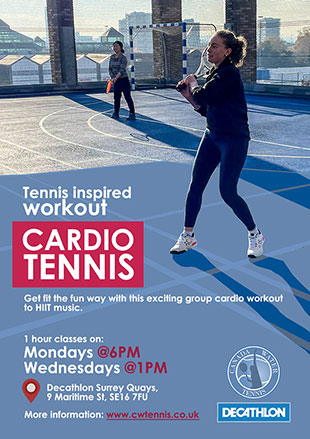 Cardio Tennis includes a warm-up, cardio workout, and cool down phases. It's sociable and much more fun than working out on a treadmill. To book a place please visit Online Bookings page or email us. Book early to avoid disappointment! |