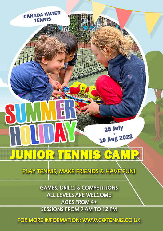 Canada Water Tennis holidays camps are the perfect solution to ensure your child enjoys a school holiday like no other! Our camps are aimed at children aged 4+ and designed to be fun for both beginners and more advanced players. Our tennis camps are the perfect way for your kids to receive a lot of professional coaching through fun and structured activities in a safe and friemdly environment. You can book online for individual days or the entire week (discounts are available when booking for a full week). To book a place please visit our Online Bookings page. |